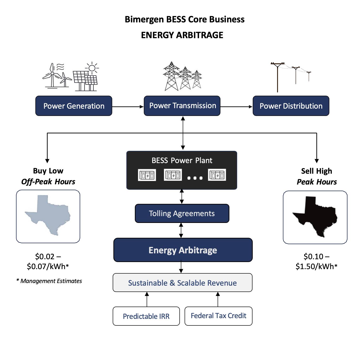 Bimergen Energy Corporation [OTCQB: BESS] is a utility-scale Battery Energy Storage System (BESS) asset owner, project developer, and independent power provider focused on delivering critical power grid stability and reducing energy price volatility. The Company owns 23 development stage BESS projects with a cumulative energy capacity of estimated 2 gigawatts (GW). The company secures project financing and oversees construction of their energy storage projects, while operating partners and institutional counterparties will manage daily energy trading operations under long-term offtake agreements ensuring stable, contract-backed revenue. The company also owns 13 development stage solar energy projects with an anticipated cumulative generation capacity of 1.640 gigawatts (GW).